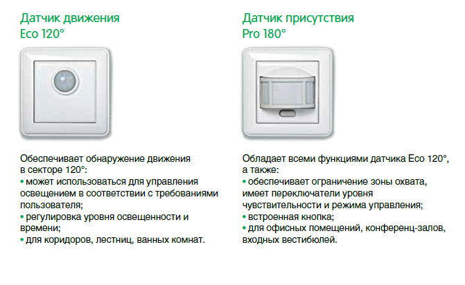 Датчики движения и присутствия от Schneider Electric сделают вашу жизнь гораздо удобнее. Свет будет включаться, как только кто-нибудь войдет в контролируемую зону. Удобное, надежное и эффективное решение позволит вам меньше платить за электроэнергию, поскольку нагрузка будет отключаться автоматически через заданное вами время. Не правда ли, здорово, когда удобство сочетается с экономией?