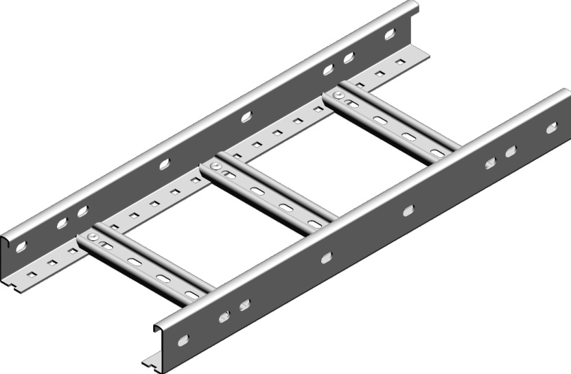Кабельные лотки лестничного типа – это электромонтажные изделия, напоминающие лестницу. Конструкция лестничных лотков состоит из двух боковых профилей соединенных перемычками. |